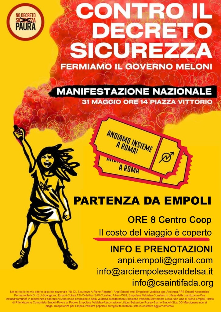 Il costo del pullman è coperto, per info e prenotazioni scrivete al 339636791 o invia email ai seguenti anpi.empoli@gmail.com, info@arciempolesevaldelsa.it, Info@csaintifada.org.