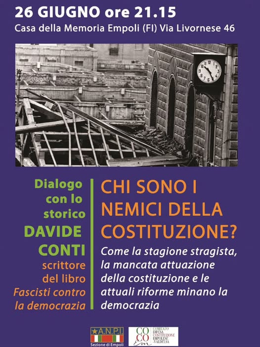Ci vediamo Venerdì 26 Giugno alle ore 21:15, presso la Casa della Memoria di Empoli.