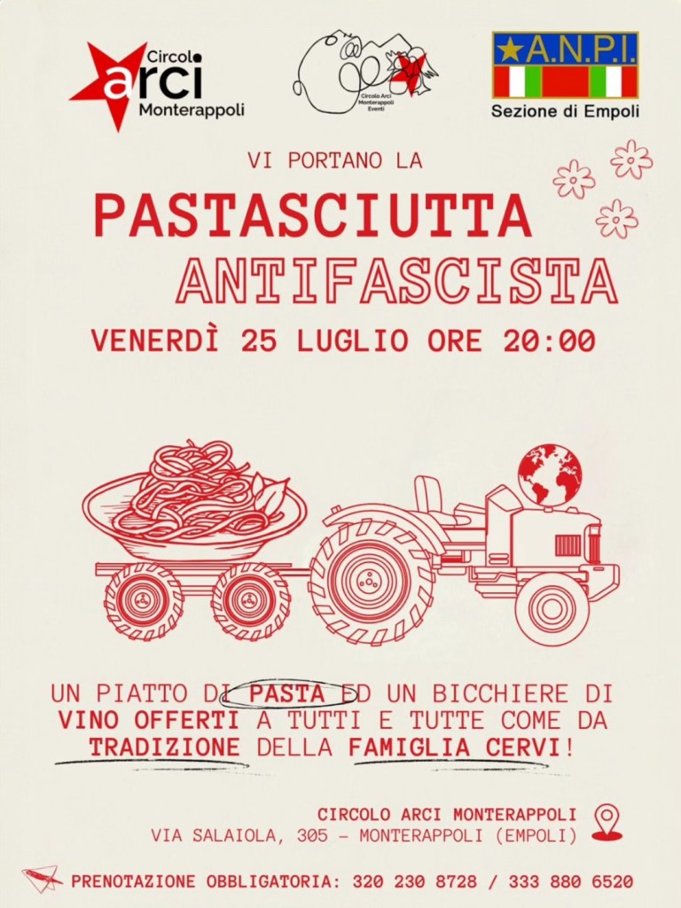 Sabato 10 Maggio presso il Circolo ARCI Tinaia, via Piano della Tinaia 6, Empoli – Ingresso libero Ore 18.30 Apericena
